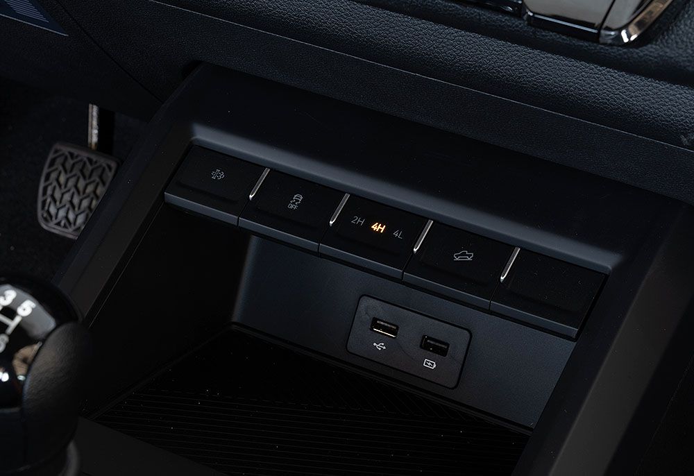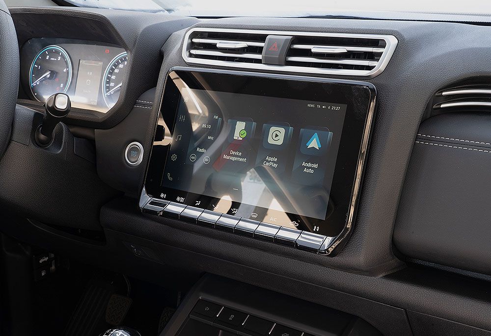 Transmisión automática ZF de 8 velocidades y sistema 4WD BorgWarner con modos Auto, 4H y 4L. Multiplicación de fuerza 2,48x en modo 4L para enfrentar cualquier desafío con solvencia.